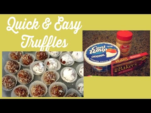 3 Ingredient Truffles!! | Perfect for the Holidays. - Cool Whip Truffles - These are so good! 1 box of bakers chocolate 1 Container of Cool Whip 1/2 cup peanut butter Melt Chocolate (30 seconds at a time), mix in peanut butter, then ...